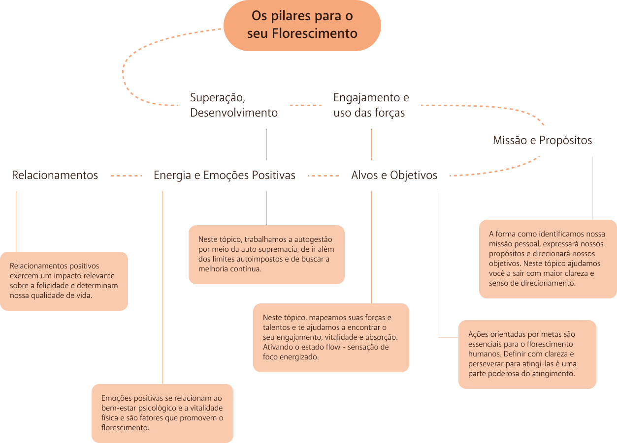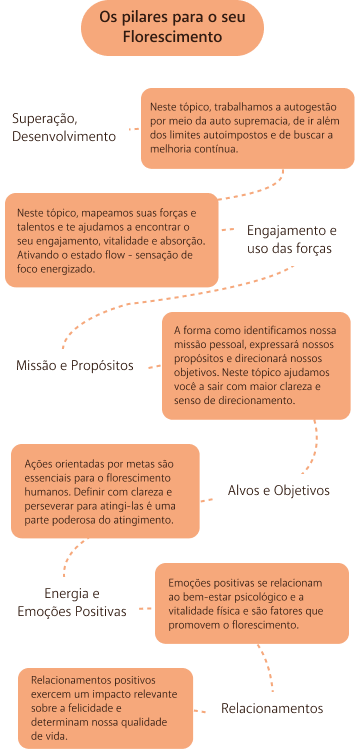 florescimento em sua vida em 6 pilares: Trabalho, Emocional, Qualidade de Vida, Relacionamentos, Espiritualidade e Propósitos.