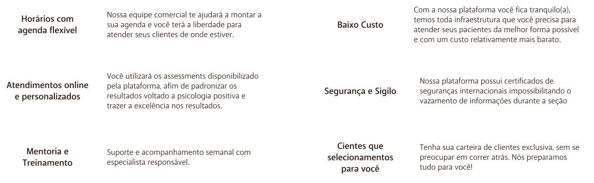 Você utilizará os assessments disponibilizado pela plataforma, afim de padronizar os resultados voltado a psicologia positiva e trazer a excelência nos resultados.